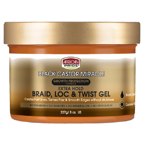 African Pride Black Castor Miracle Extra Hold Braid, Loc & Twist Gel